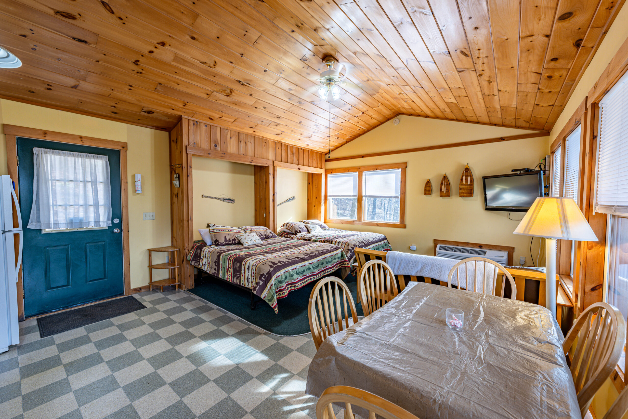 Each of our handcrafted cabins is themed-based. This cozy, one-room cabin is perfect for a group of up to 6 people and is designed around one of the areas most popular activities: Fishing.